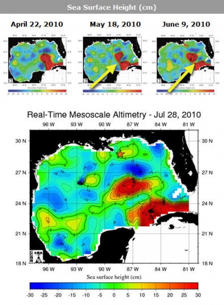Wenn sich russische Forscher nicht irren, werden wir uns diesen Winter vermutlich tatsächlich eine Klimaerwärmung wünschen. Ich las bereits im Juli davon, dass der Golfstrom - aufgrund des Corexiteinsatzes - abgerissen sei. Ich prüfte die Satellitenbilder und konnte deren Authentizität bestätigen. Weitere Recherchen ergaben jedoch, dass dieses Phänomen bereits 2005 einmal kurz eingetreten war und sich kurz darauf wieder regulierte. Daraufhin beschloss ich zu dem Thema vorerst keinen Artikel zu machen. Neue Ergebnisse belegen jedoch, dass es durchaus Grund zur Sorge gibt. Auf der Seite von Pure Energy Systems sind einige der Satellitengrafiken eingebettet und ich habe diese seinerzeit auf den Quellseiten gesucht und als authentisch bestätigt. Hier einige davon im Überblick: | |||||||||||||||||||||||||||||||||||||||||||||||||||||||||